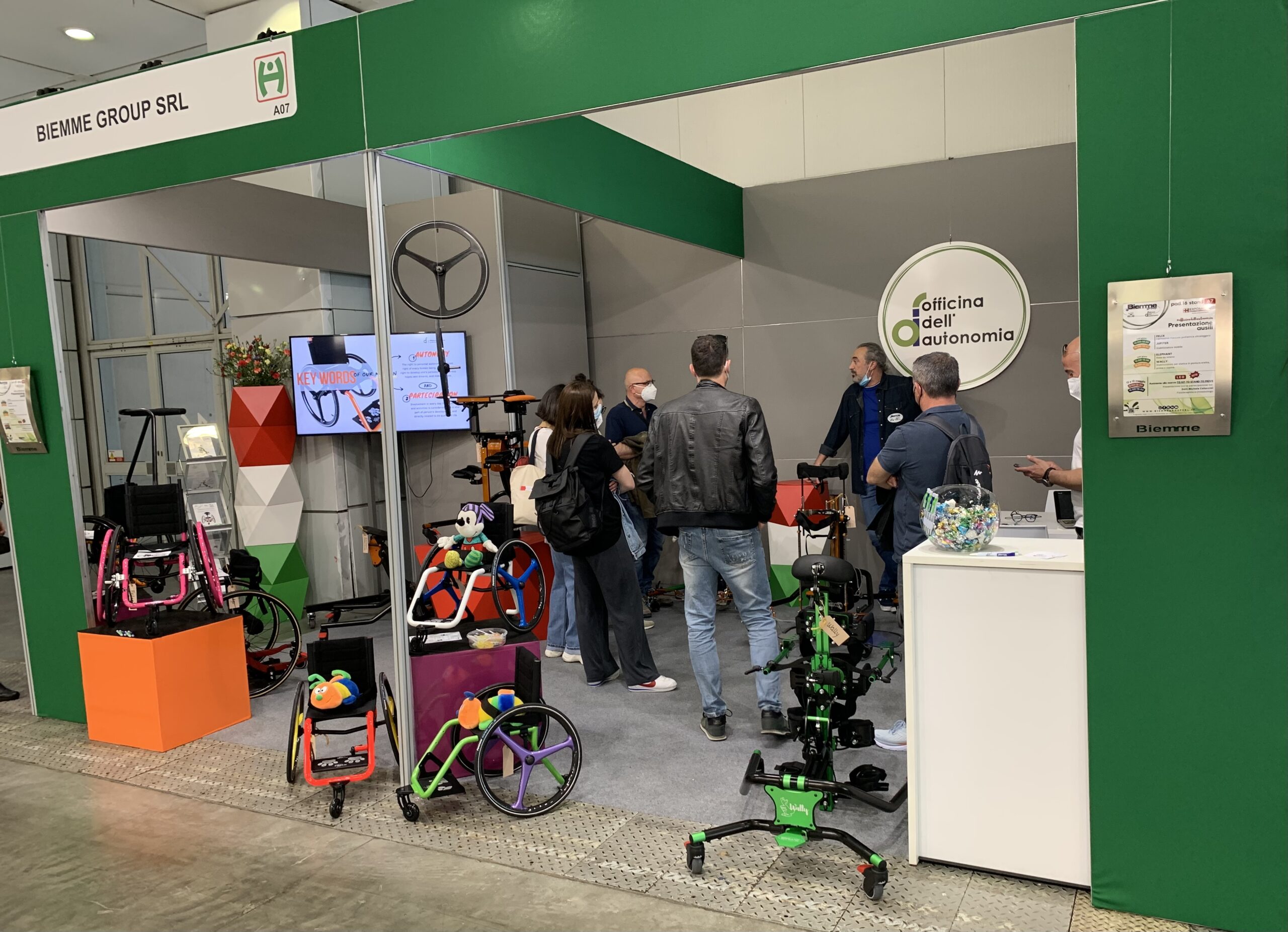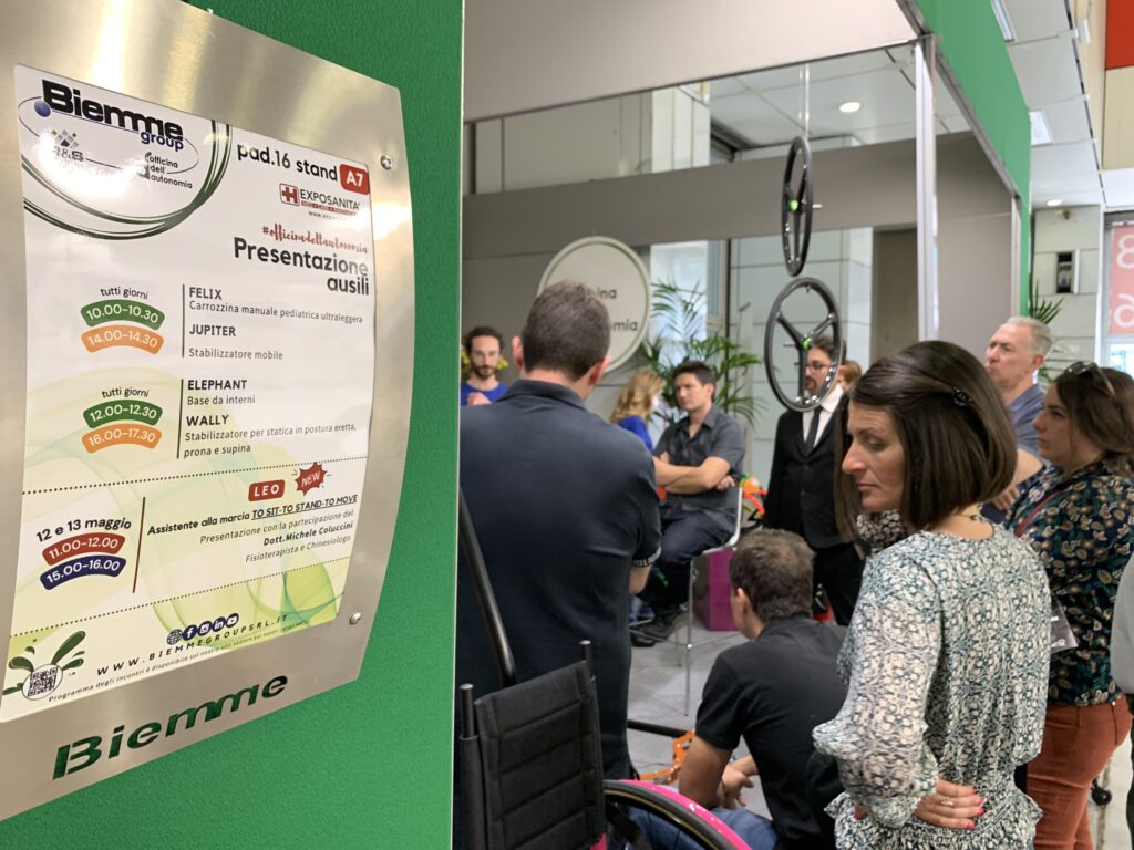 Il nostro stand era nel Padiglione HORUS – Prodotti, servizi, iniziative per la disabilità, l’ortopedia, la riabilitazione, dove abbiamo esposto 7 ausili di nostra produzione.