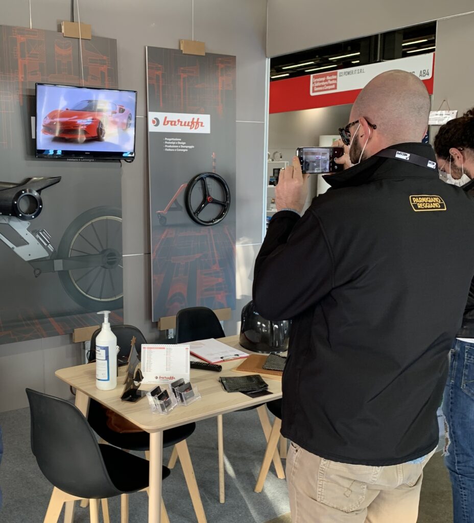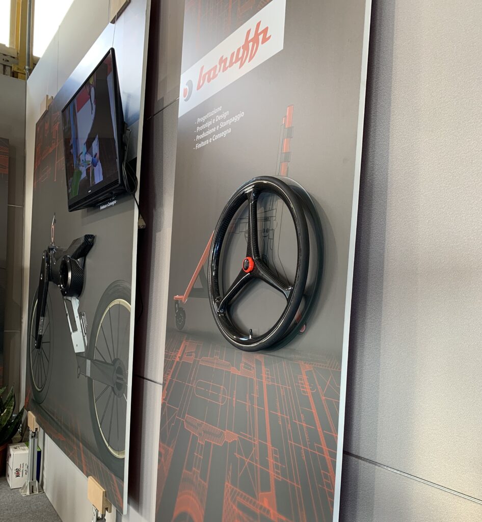 Allo stand di Baruffi Composites Solutions è esposto il progetto della ruota in carbonio realizzato insieme. E’ stata scelta tra i tanti progetti innovativi di questa azienda per essere presentata in occasione della loro partecipazione alla più importante fiera italiana per il mondo manifatturiero.